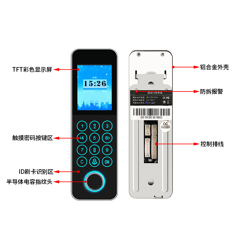 Semiconductor fingerprint access control integrated machine metal narrow edge IDIC card access control machine NFC card fingerprint machine access control set