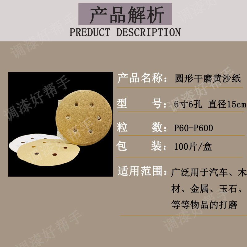 6-inch 6 holes dry frosted paper sheet metal sheet metal 150mm grinder polished and polished flocking disc sandpaper sheet