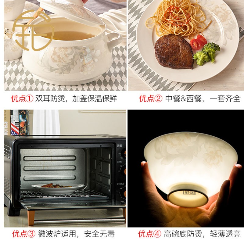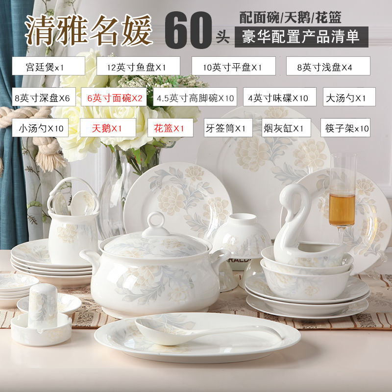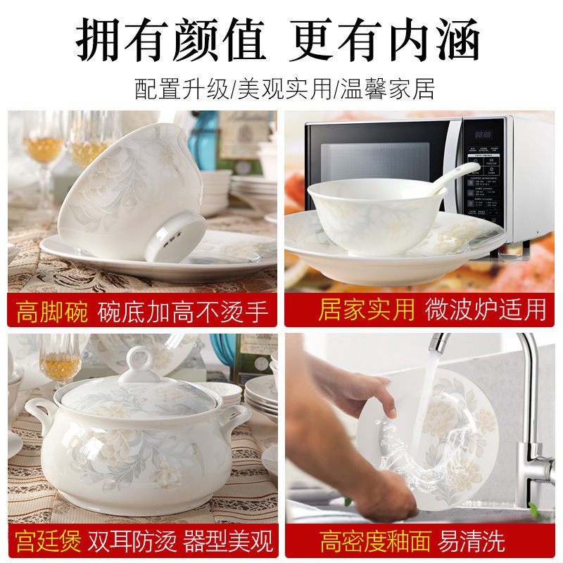 Platinum Yosen Boutique High-end Bone Ceramic Dish Bowl Dish Household Chopstick Set