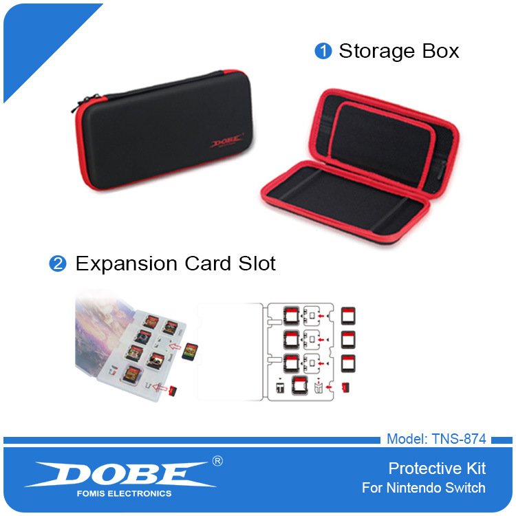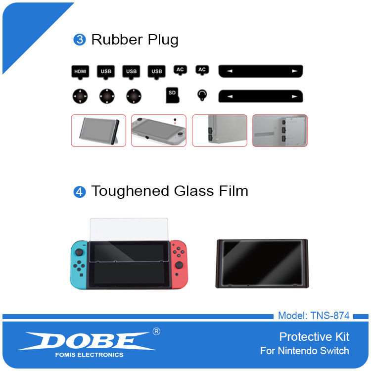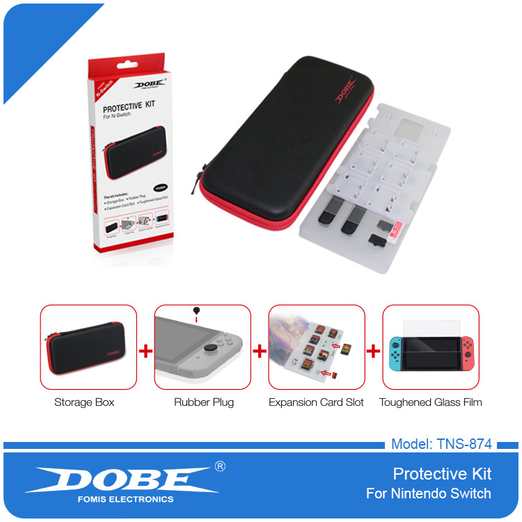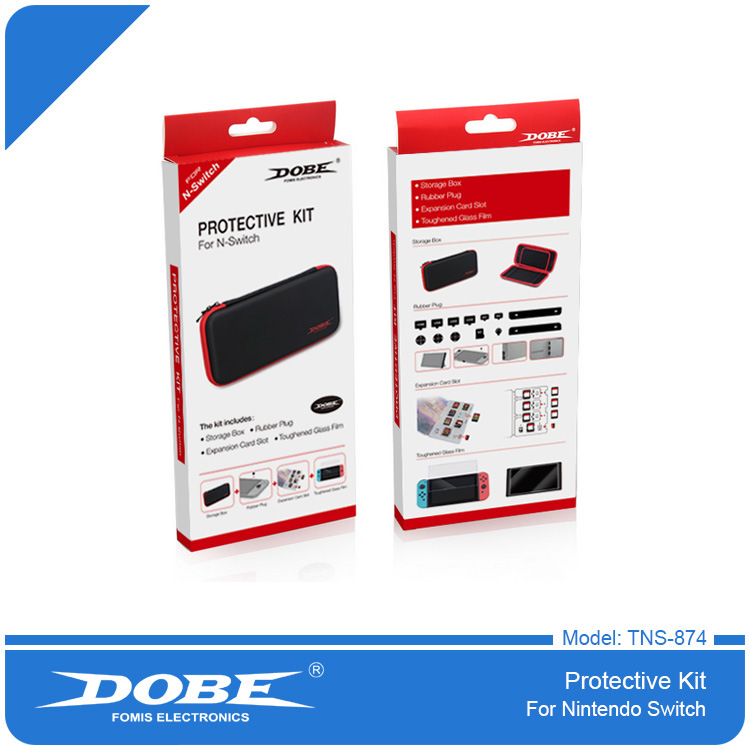 DOBE Switch Protection Kit contains EVA hard pack + dust plug + card box + tempered film TNS-874