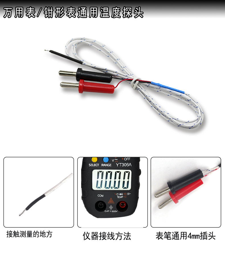 Multimeter temperature monitor sensor with line K-type thermocouple thermometer universal thermometer banana head contact