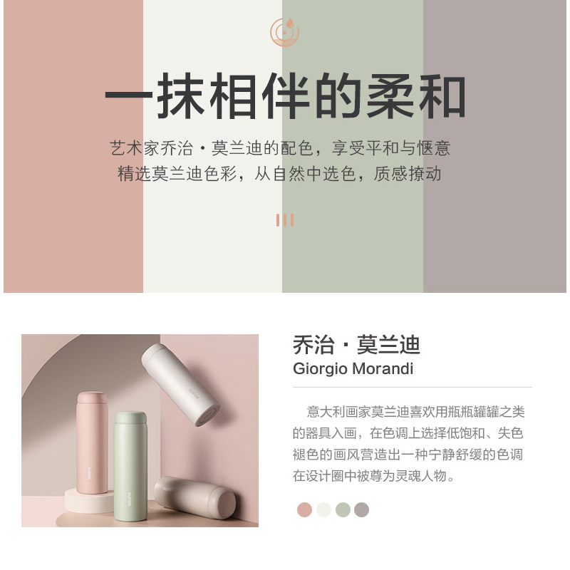 (Official direct guarantee) (One-YEAR warranty after-sales worry-free) (380ML-GRAY BEAN GREEN) - MORANDI AESTHETICS (380ML-CORNEL POWDER)-MORANDI AESTHETICS (3