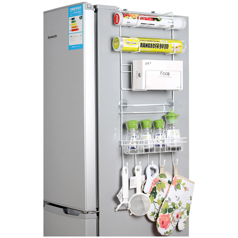 Kitchen Fridge Shelf Side Free of perforated Contained Racks Wall-mounted Supplies Side Magnetic Suction Side Hanging Seasoned Jars Shelf