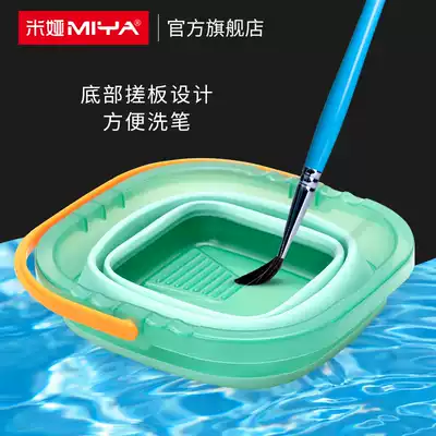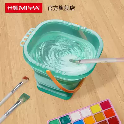 Mia folding brush barrel retractable multifunctional silicone large bucket for children's art students portable trumpet pen holder sketch color pigment gouache painting watercolor painting special tool