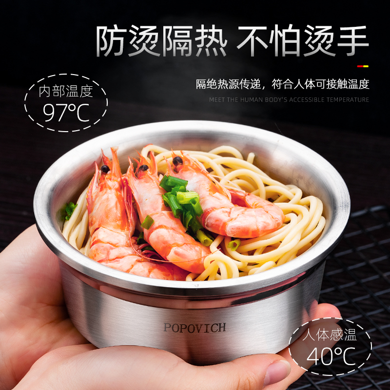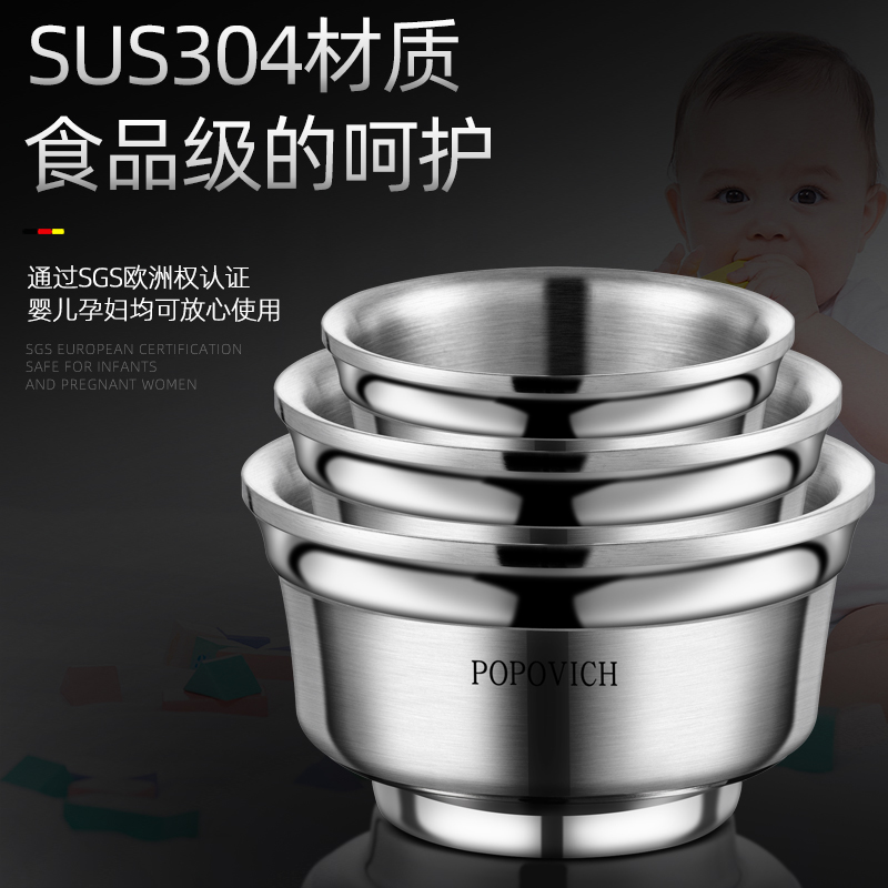 German home 304 stainless steel bowls food grade children's baby double anti-burn and fall adult rice bowls tableware-Taobao