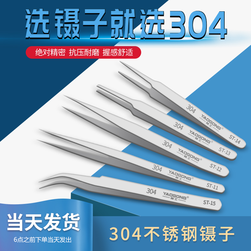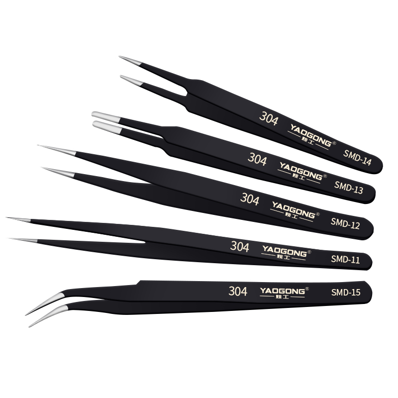 Yao Artificial Antistatic Tweezers 304 Stainless Steel Tools Mobile Phone Repair Clip Elbow Sharp Mouth straight head pick up Mao suit
