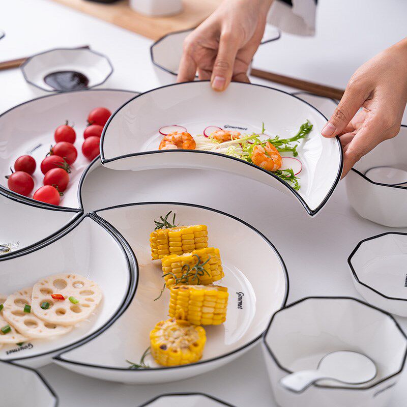 Net red with the same household ceramic tableware combination moon reunion platter family taste dish bowl spoon chopsticks set