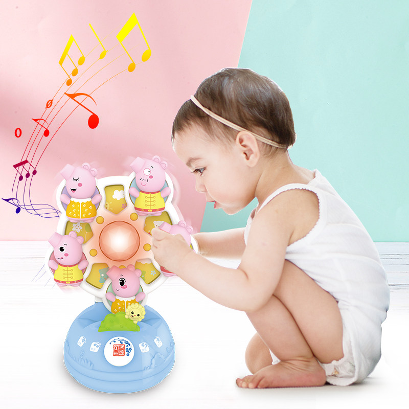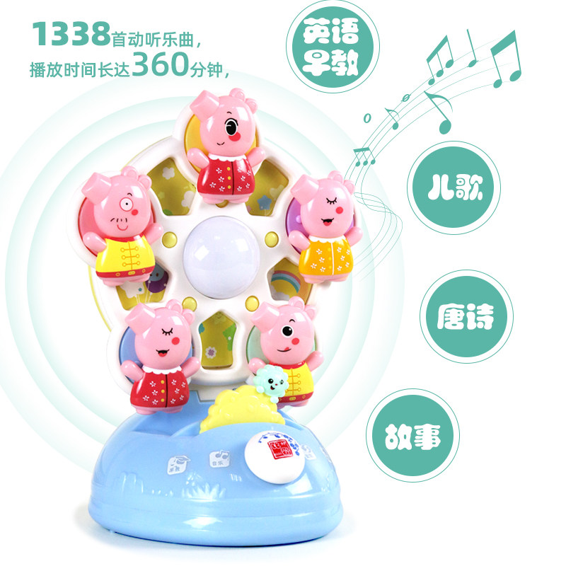 Rotating toy, turning music piggy toy early education baby fun light music toy 0-6-12 months baby
