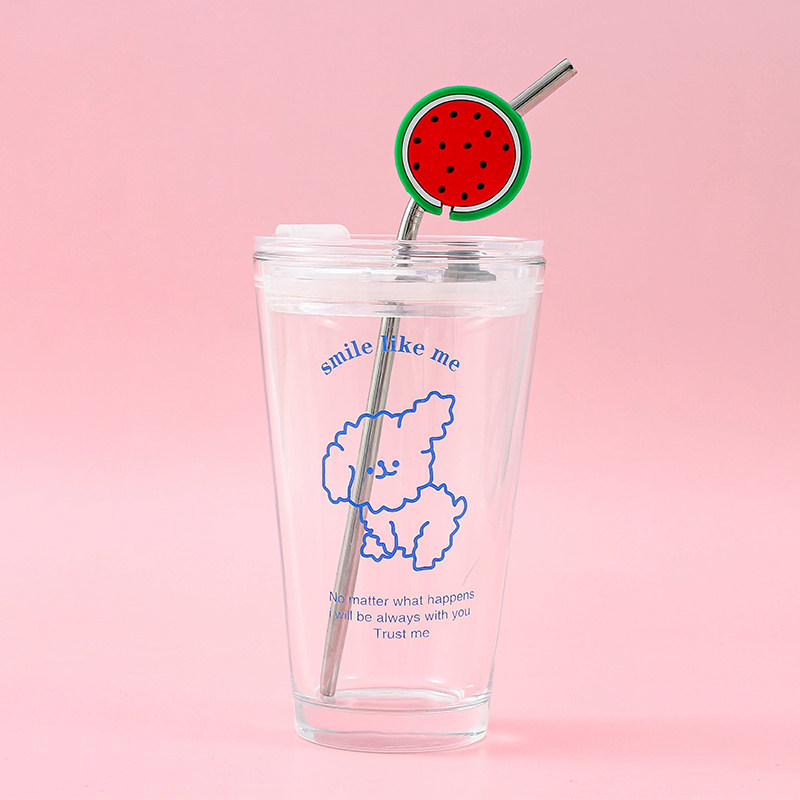 Straw set Net red fruit girl glass straw set Decorative silicone cover sealed anti-scalding set Gift gift