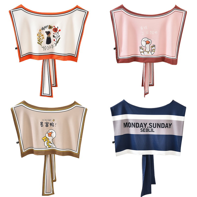 Spring and autumn shoulder-shoulder small shawl with knotted silk scarf scarf women's air-conditioned room neck guard thin section fake collar thin section