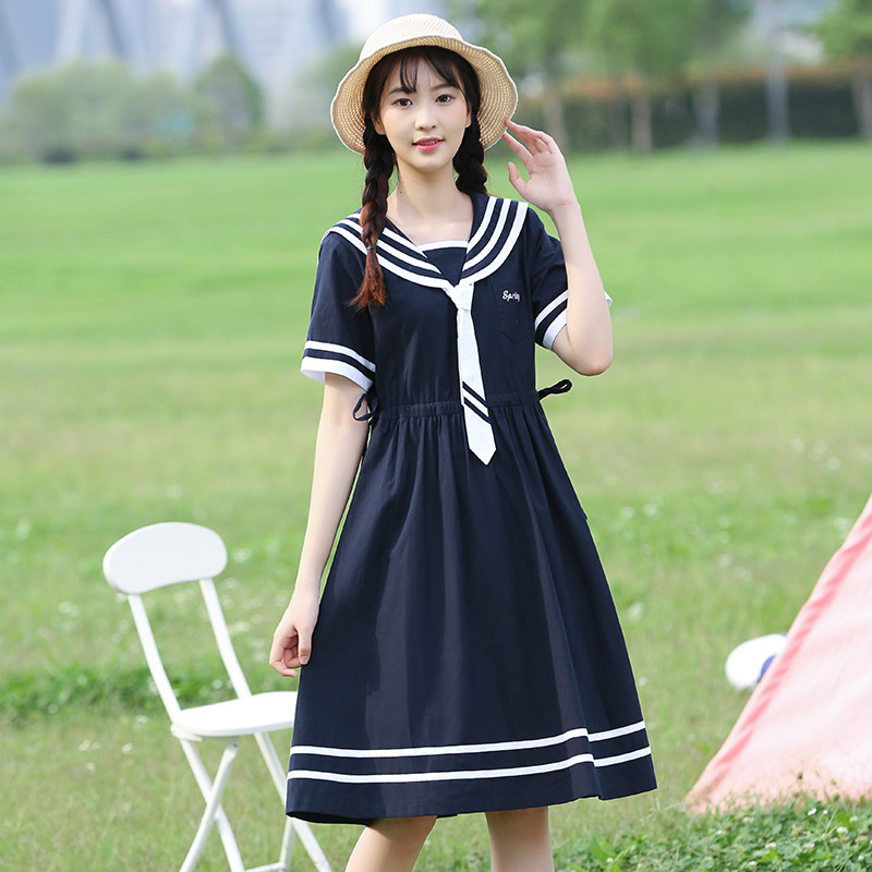 Navy Wind Ocean Clothing College Wind Day Department Sailor Clothes Navy Collars Jk Teenage Girls Junior High School Students Summer Dress Skirts