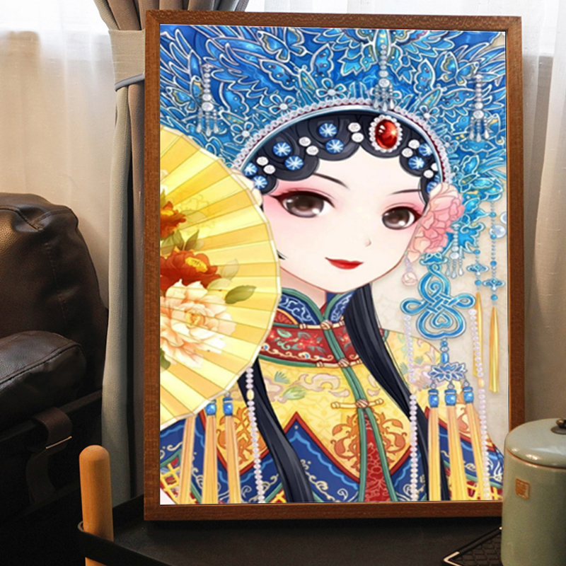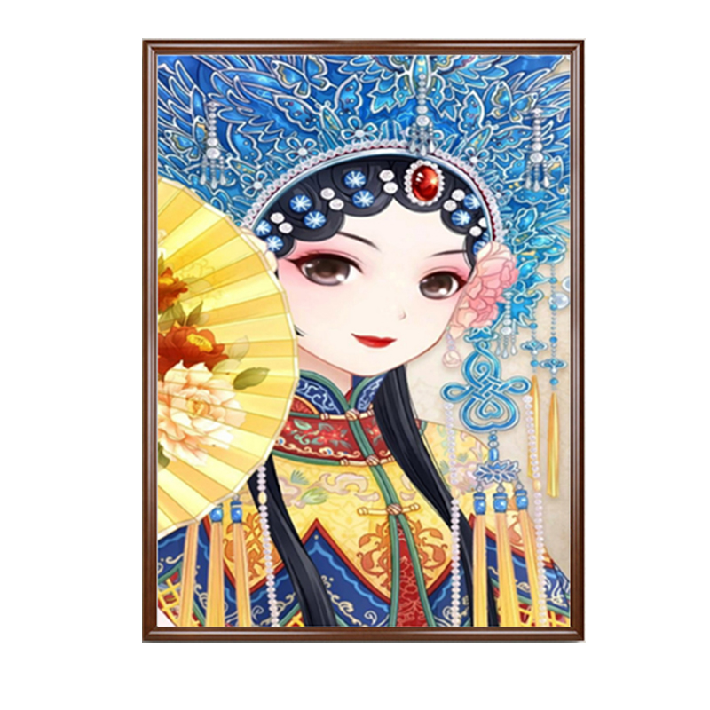 2021 new cross-stitch Peking Opera characters flower Dan entrance small vertical version full embroidery bedroom self-embroidery handmade thread embroidery