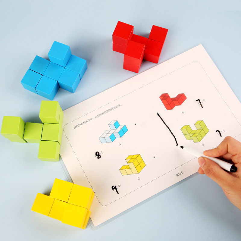 Children Puzzle Math Teaching Aids Solid Thinking Training Square Building Blocks Three View Space Imagination Toys