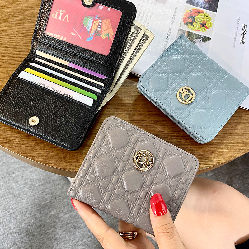 2021 new European and American wallet women genuine leather short slim and slim slim multi-position wallet mini leather wallet with zero wallet tide