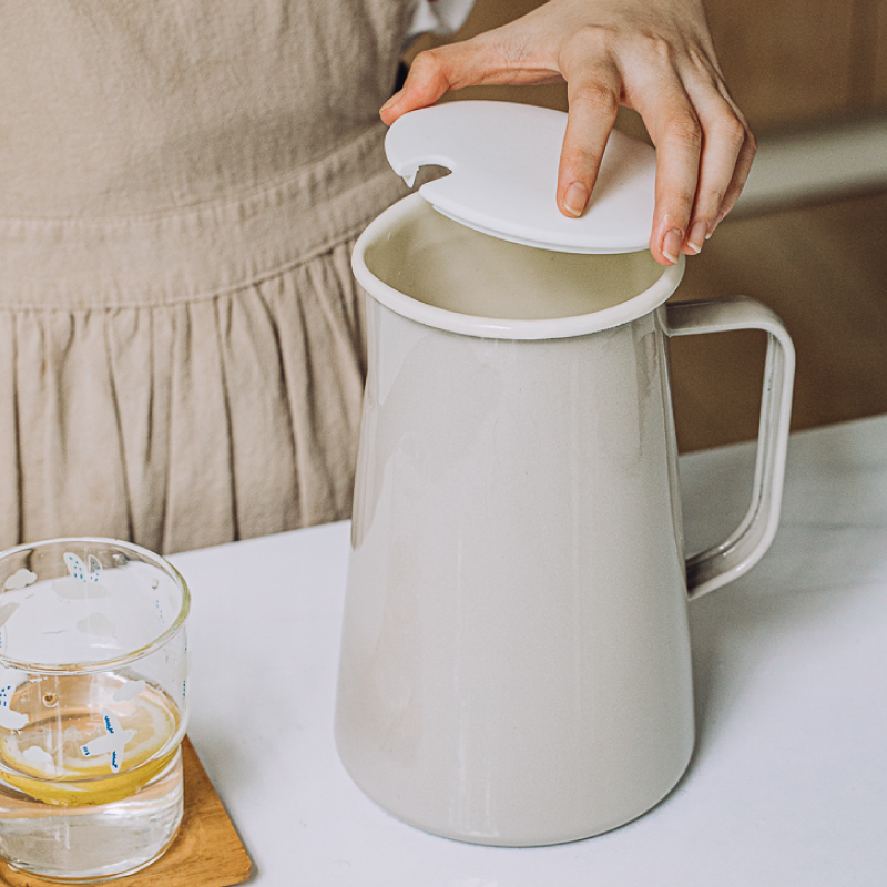 Tree Nordic Wind enamel cold water jug Home Large capacity 2L Cold Kettle High Temperature Resistant Cool White Open Water Cooled Kettle