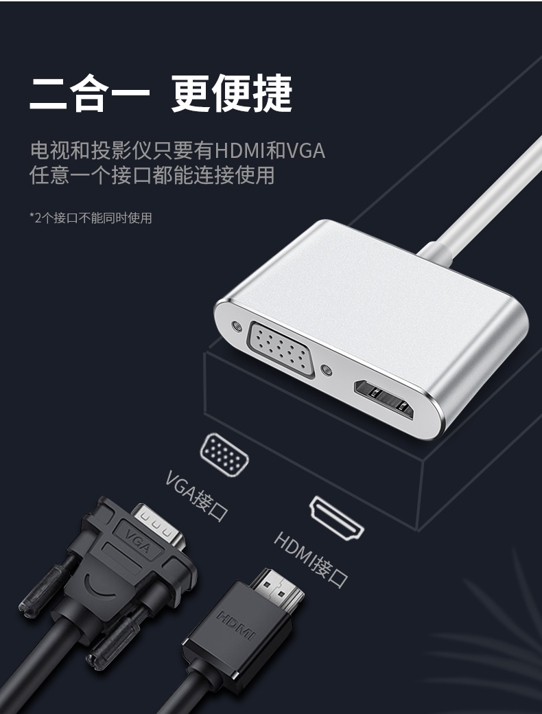 Apply Type-c to HDMI simultaneous screen VGA Huawei Mate10 Mobile TV Display Display Projector