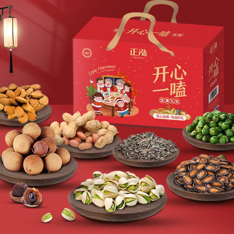 Zhenghong Nut Gift Box 1256g New Year's Goods Gift Pack Sunflower Seeds Mixed Pregnant Women and Children Dried Nuts Healthy Snacks