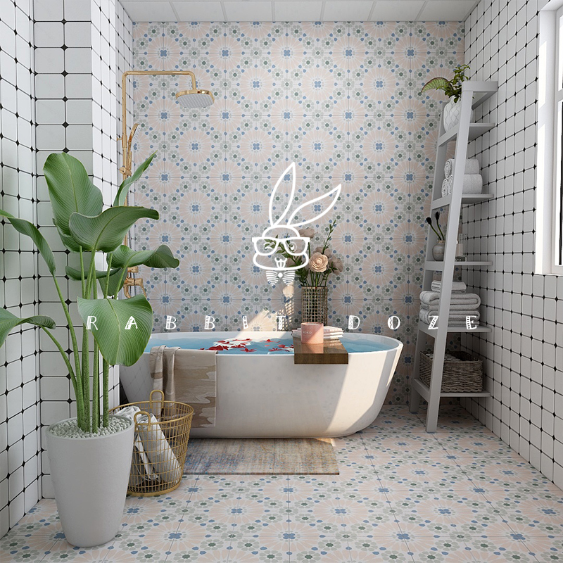 Nordic simple style tiles Pale pink kitchen dining room wall tiles net red powder room bathroom non-slip floor tiles 200200