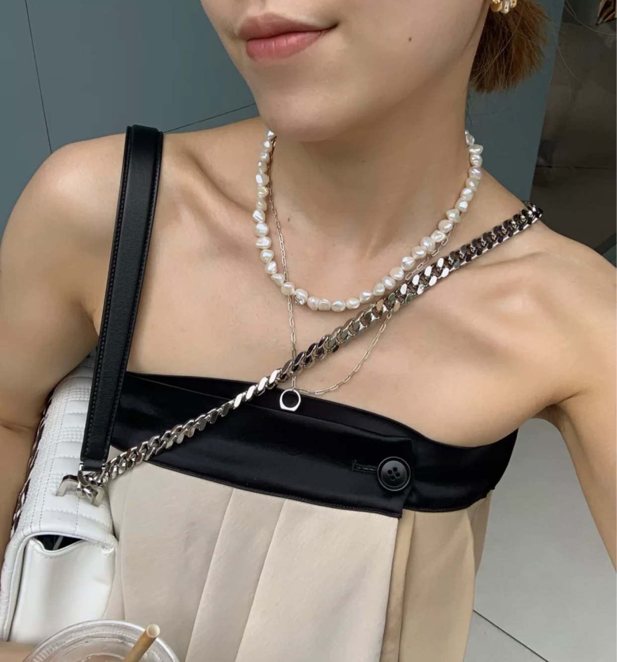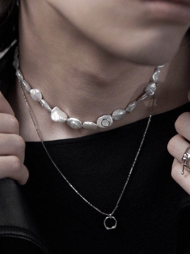 TheTavern Toggler personality independent design Baroque shaped pearl mini ring double necklace