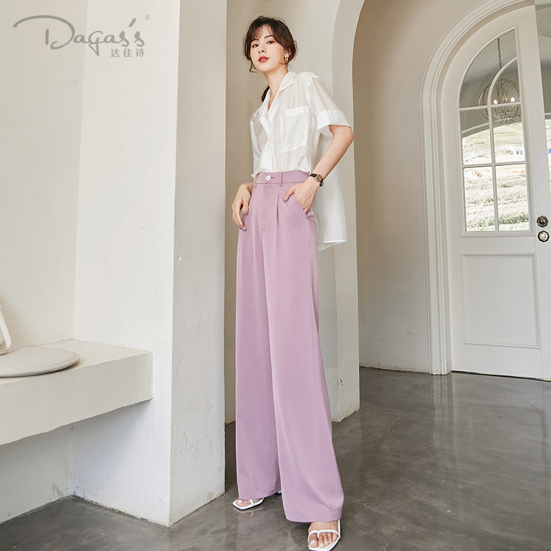 Wide legs pants high waist summer thin vertical loose straight tube suit drag trousers silk satin pants