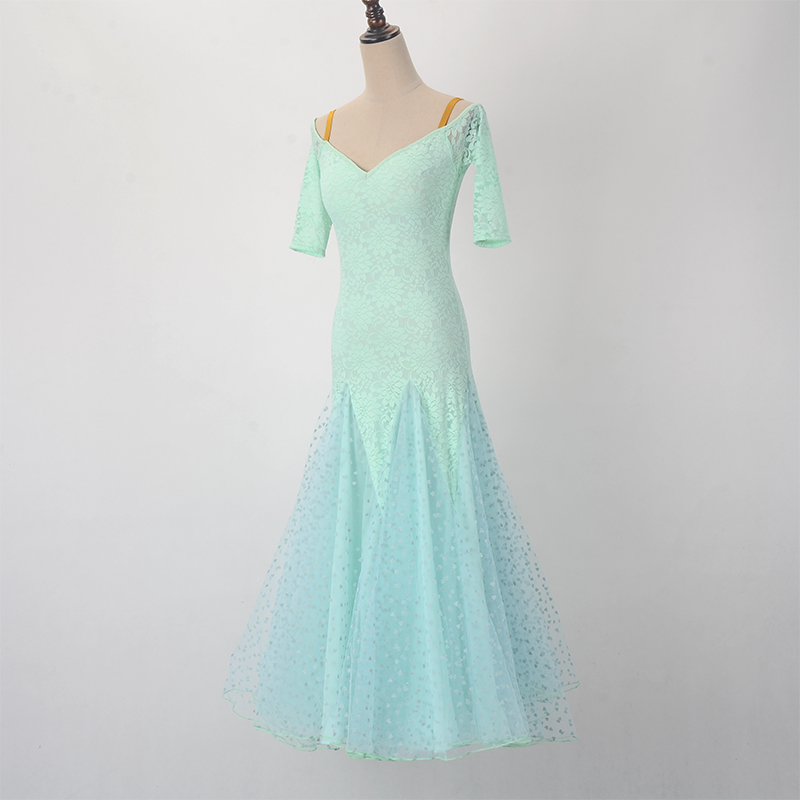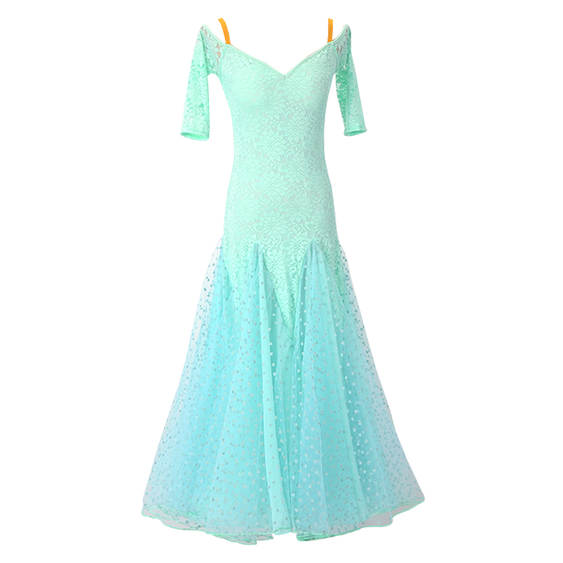 National Standard Dance Performance Dress with great swing lace double autumn and winter new double shoulder harness Lupback Morden dance dress