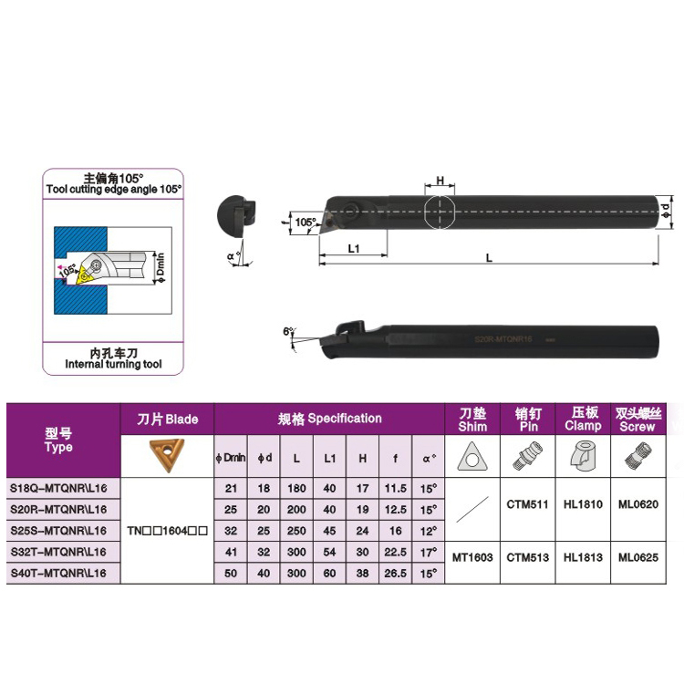 S16Q-MTQNR16 (16 square positive knife)) S16Q-MTQNL16 (16 square reverse knife) S20R-MTQNR16 (20 square positive knife)