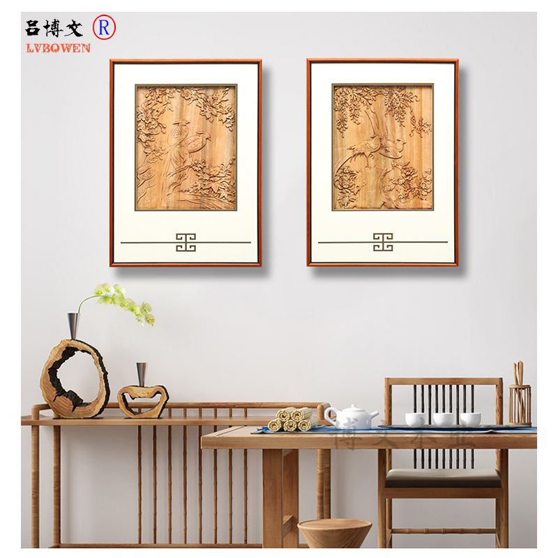 New Chinese wood carvings Fairview embroidered Mountain Water Four couplets Fragrant Camphor Wood Carving Rich and Guido Flowers Birds Solid Wood Outer Frame Decoration Painting