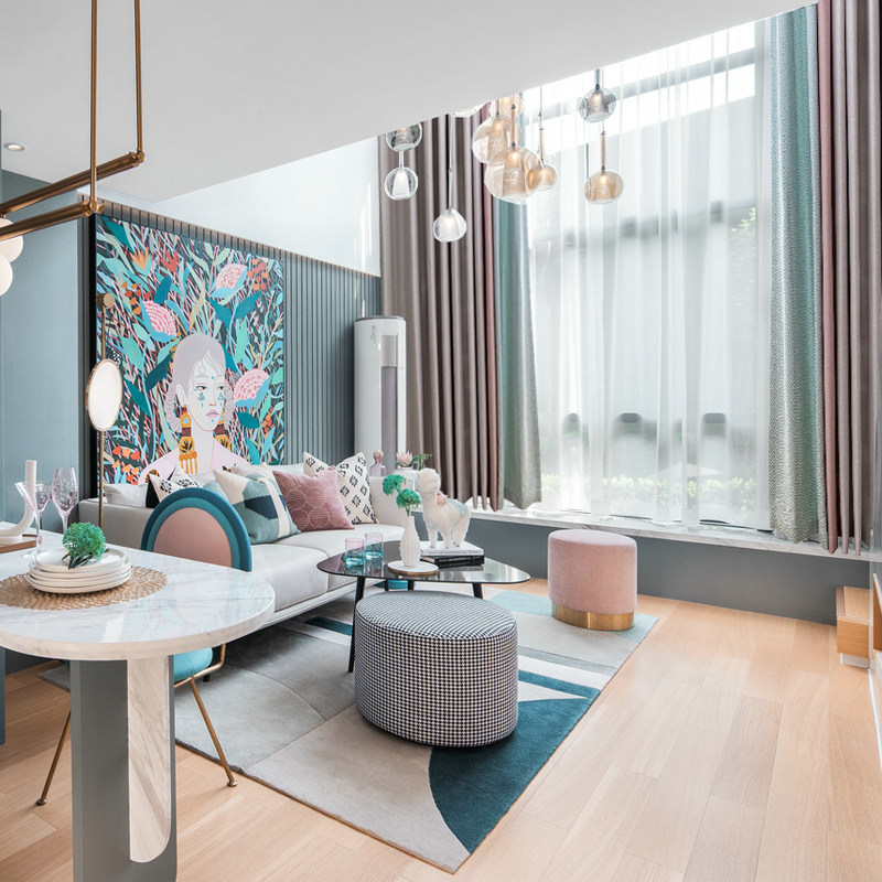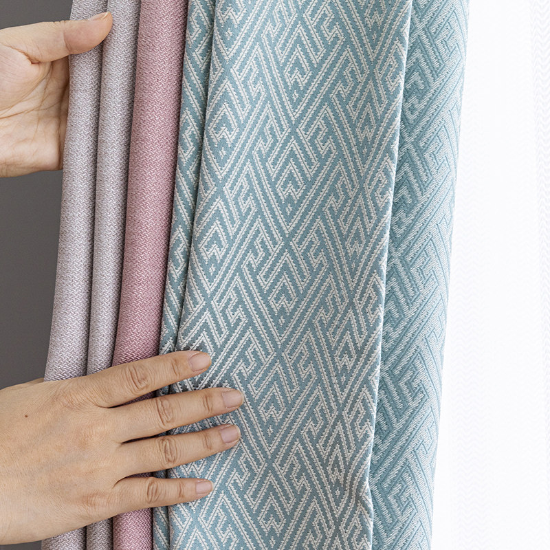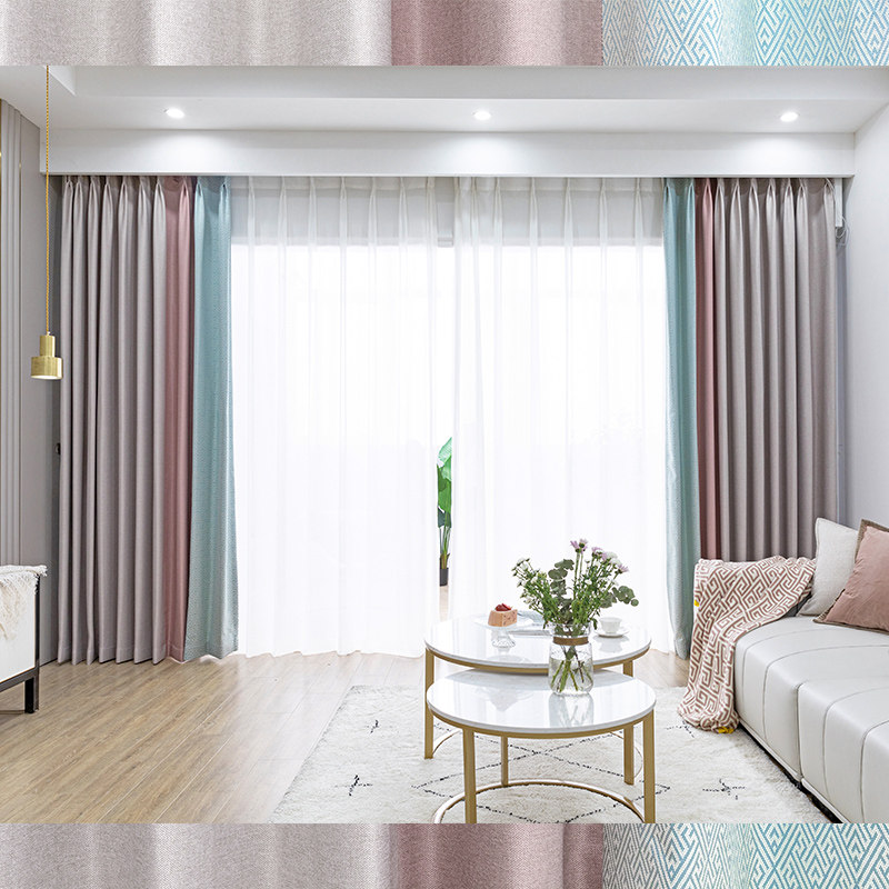 Rice Grey Pink Mint Green Geometric Splicing Curtains Modern Fresh American Living-room Bedroom Floor Shading Curtains