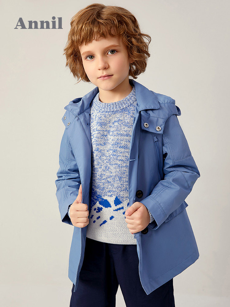 Annel children's tooling windbreaker mid-length new spring and autumn cool children's going out windproof coat with hood