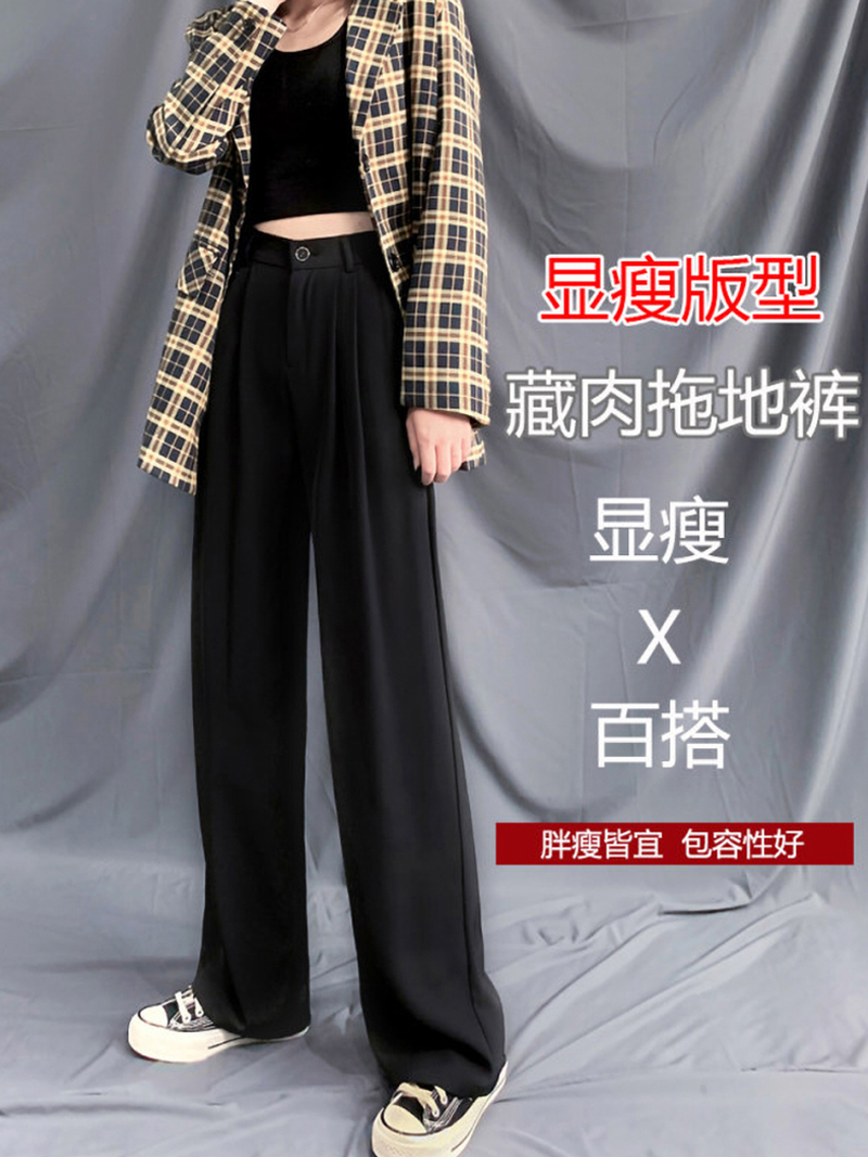 Large size high waist wide pants women's 2022 new loose straight suit pants fat sister slim casual pants
