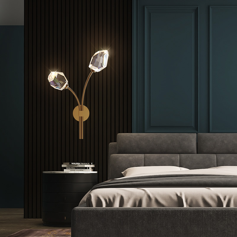 Modern all-copper light luxury crystal wall lamp simple living room background wall lamp aisle corridor creative bedroom bedside lamp