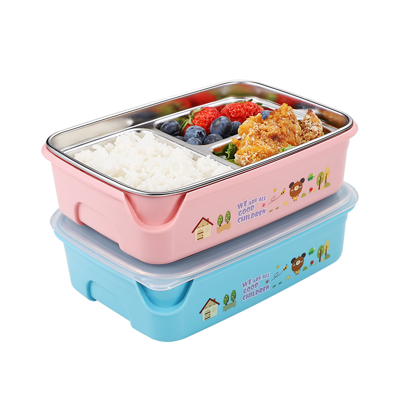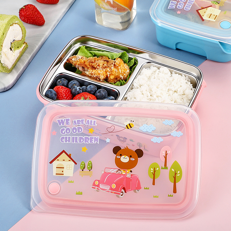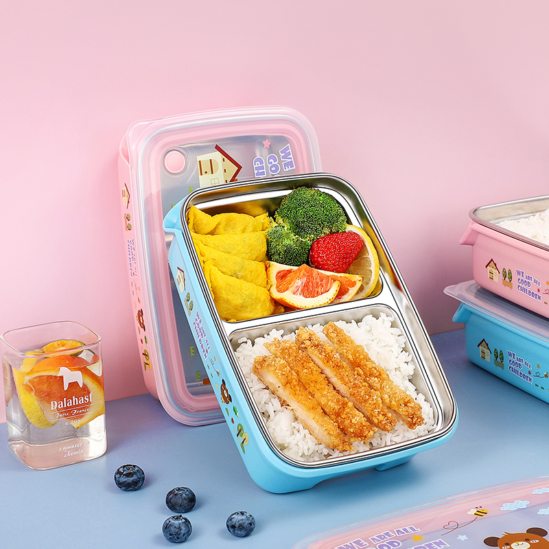 South Korea 304 stainless steel children Elementary school students lunch box Two-three-grid lunch box Lunch Box with Kindergarten Meal Kit Cartoon
