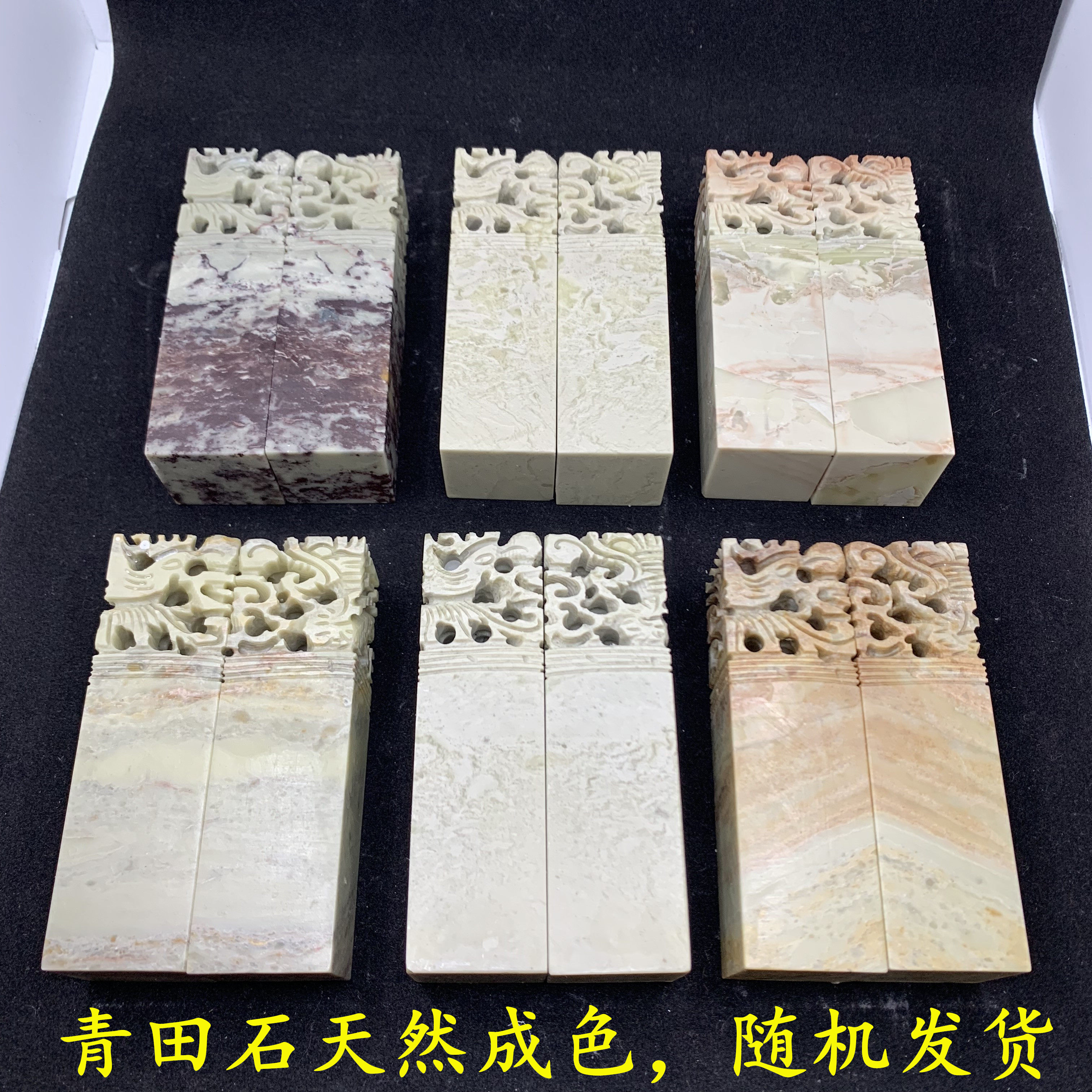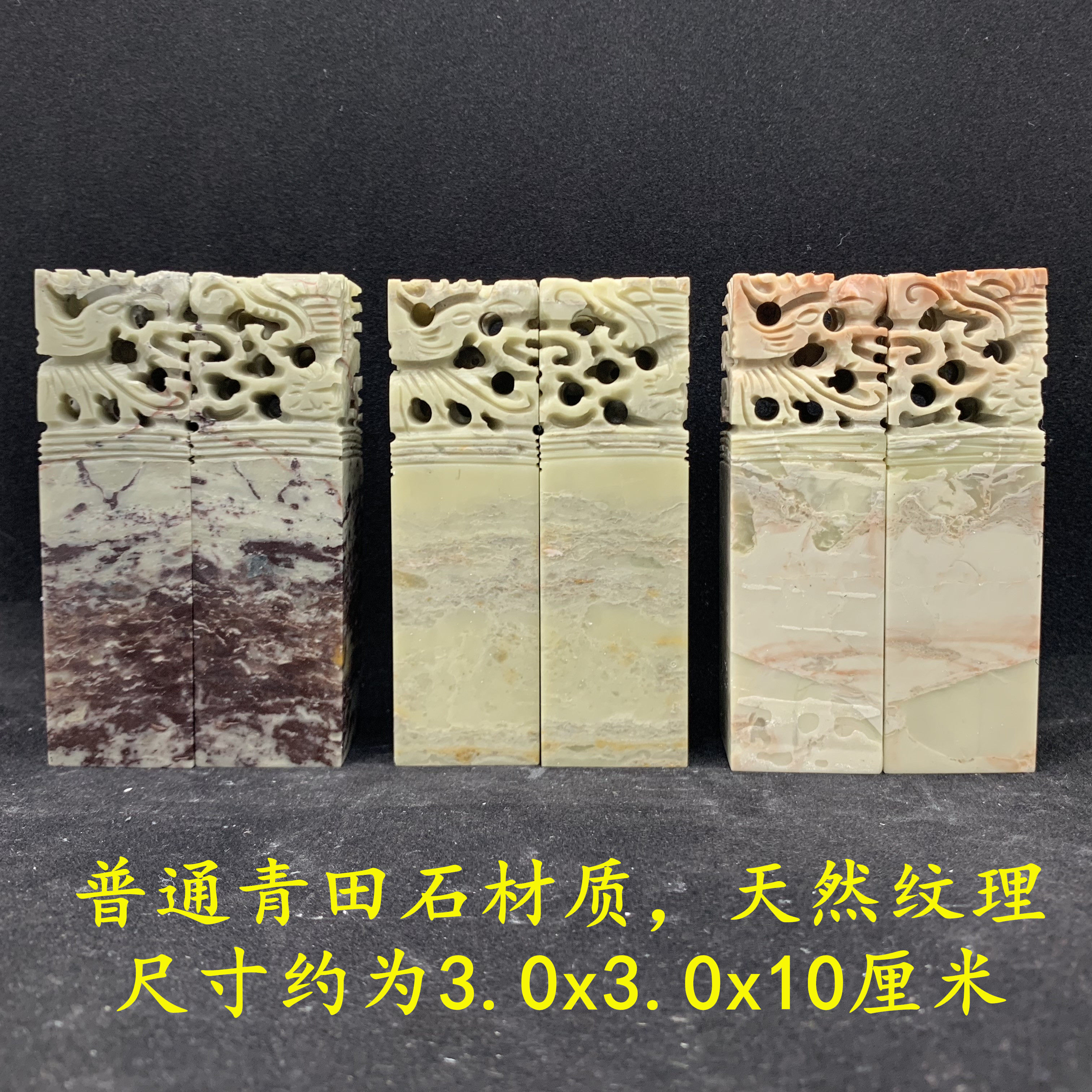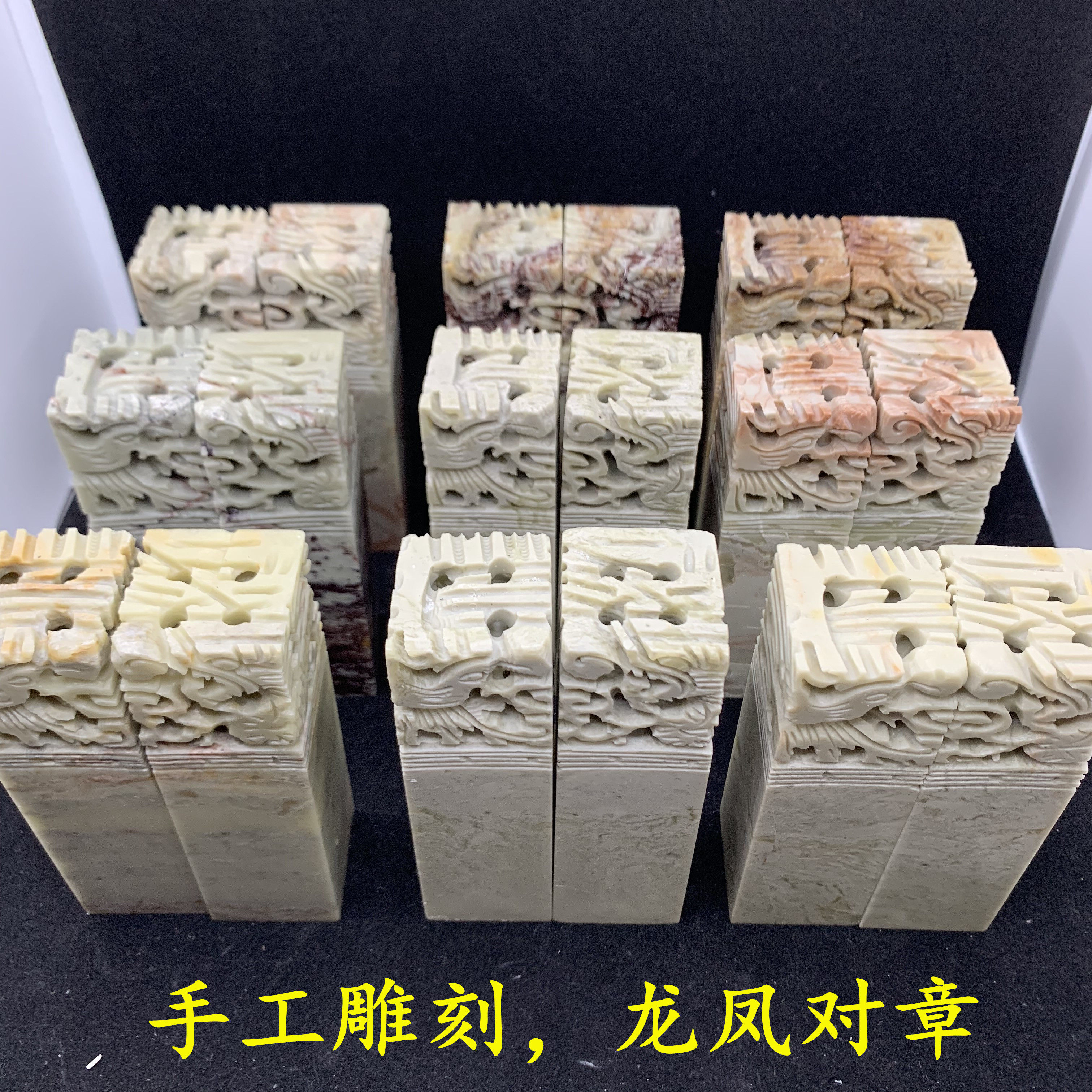 Green Fields Stone Dragon Phoenix pair Chapter 3x3x10 cm Natural grain Artisanal Engraving Lovers pair Chapter pairing Chapter Box