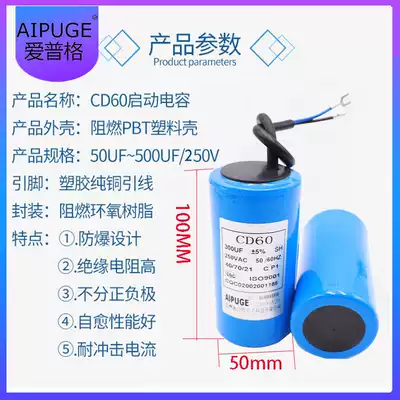 CD60 motor pump starting capacitor 100 150 200 250 300 350 400 500UF 250V