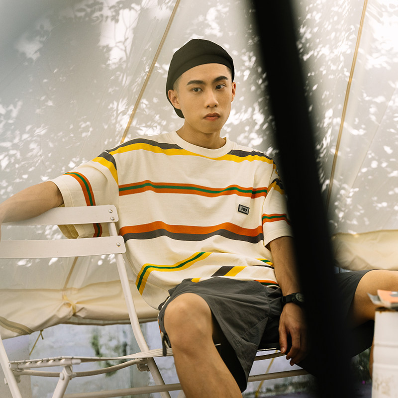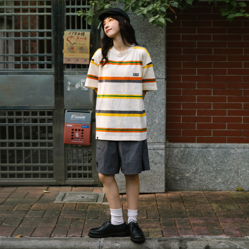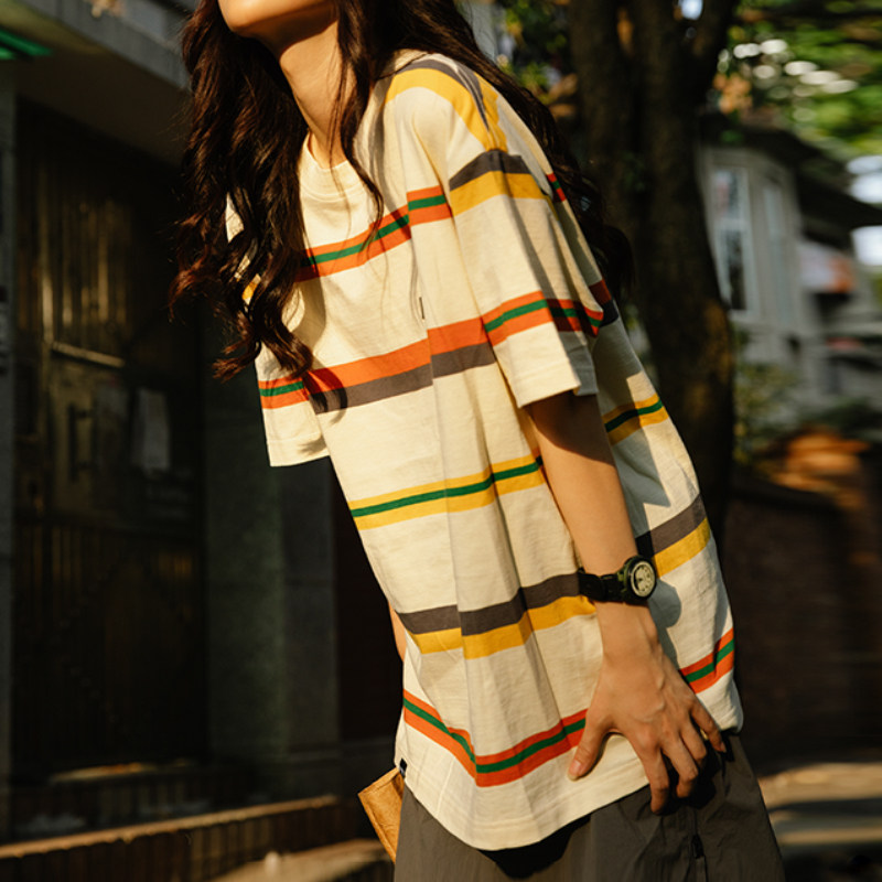 PSO Brand rainbow striped male and female loose tide card T-shirt lovers Summer casual 100 lap pure cotton short sleeves