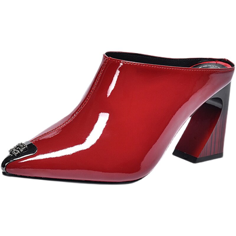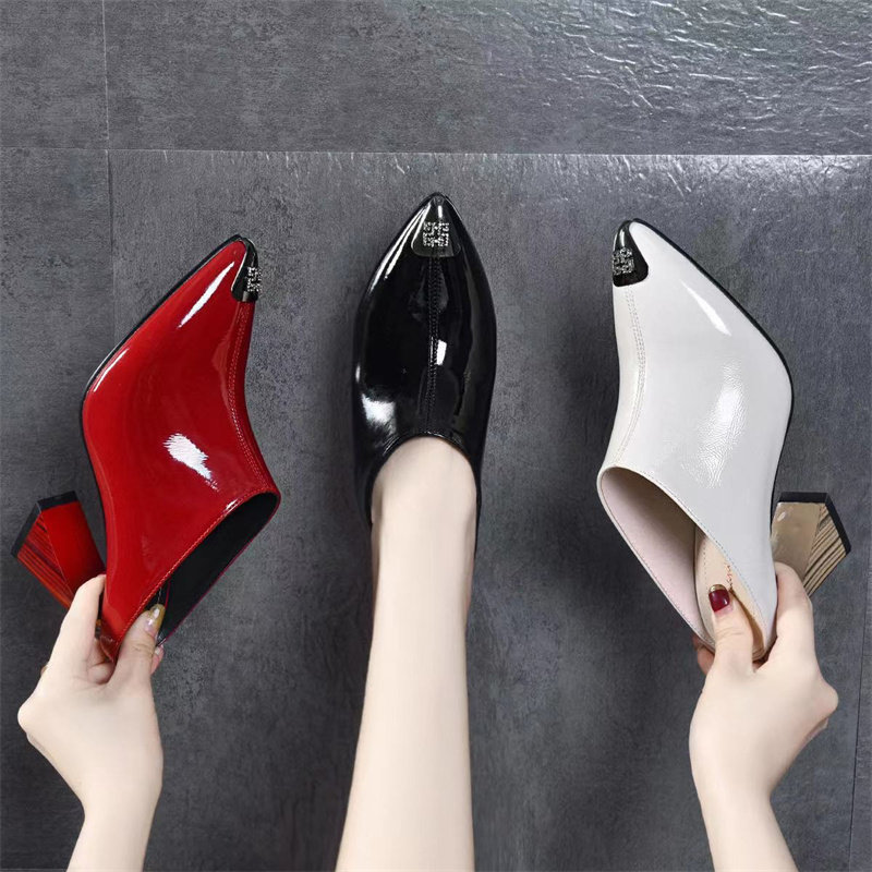 Baotou sandals and slippers women's 2022 summer new leather thick heel outer wear all-match fashion patent leather temperament high-heeled women's shoes