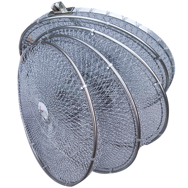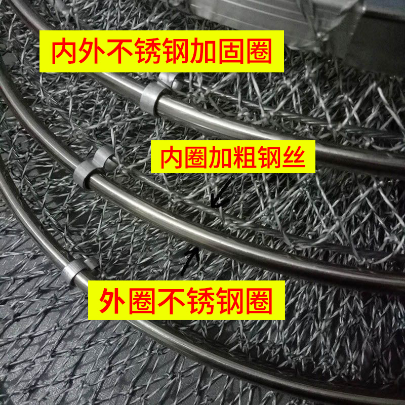 Special price vigorous horse line weaving handmade black pit fish guard net pocket stainless steel ring anti-hanging quick-drying fish cage fish basket fishing gear