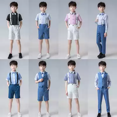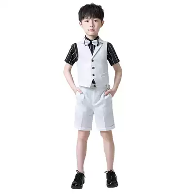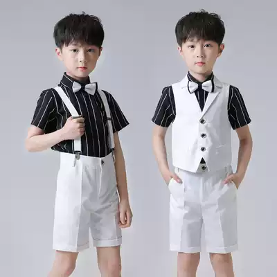 1 blue vest shorts short shirt bow tie 2 blue shirt shorts baby bag bow tie 3 black shirt white shorts hug baby bag bow tie 4 black shirt white shorts tie 5 white vest white shorts short lining