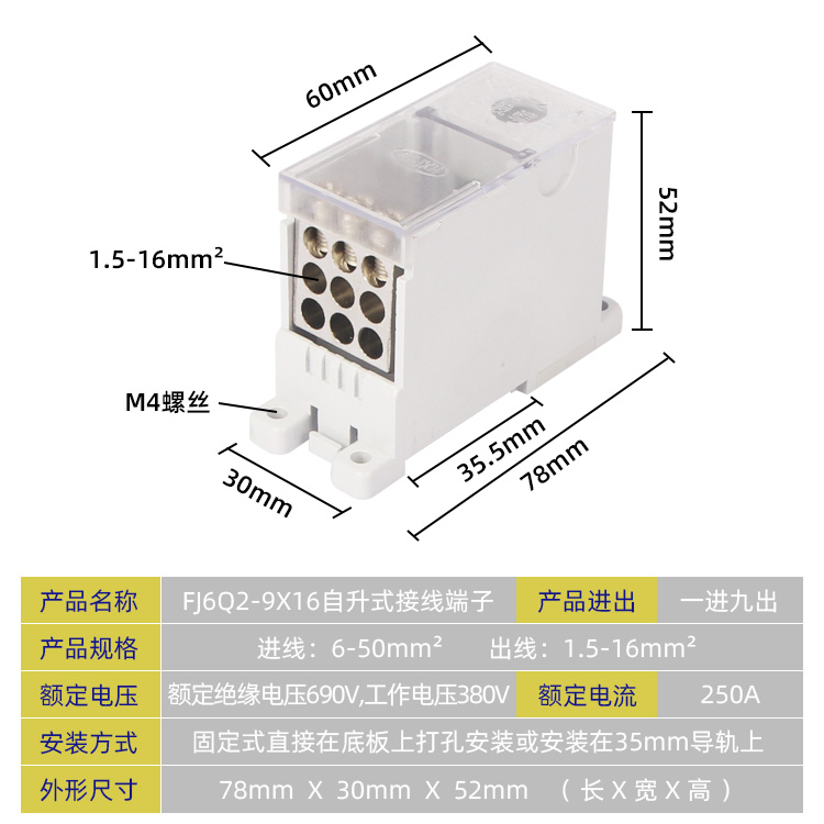 FJ6Q2 one-in nine-out branch box distribution box guide rail extension line 1-in 9-out self-lifting terminal block
