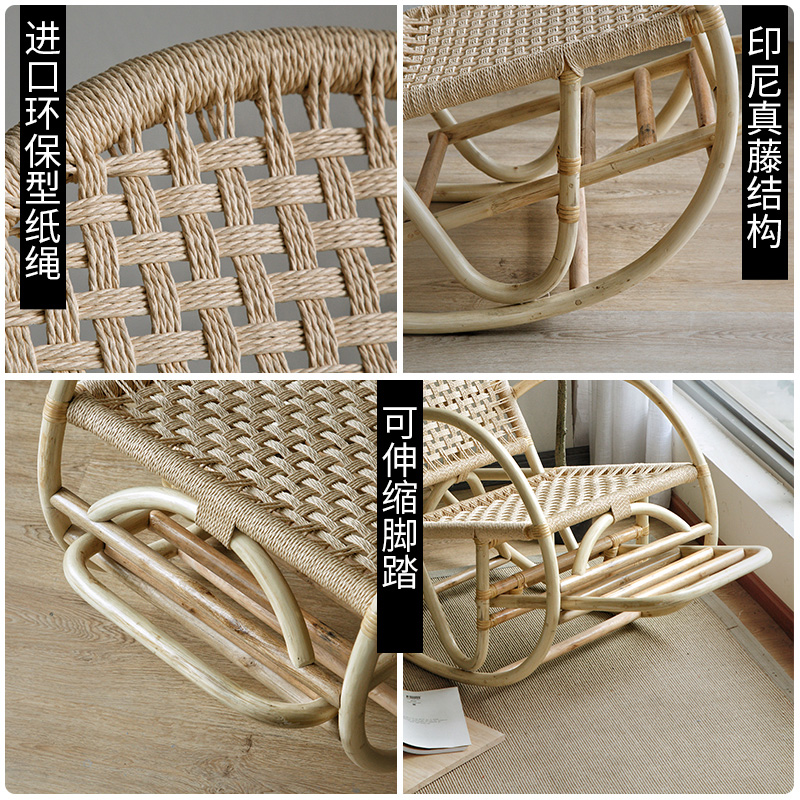 Home Rocking Chair Adult Balcony Nordic Wind Summer Rocking Chair Natural Windy Light Chair Single-person Leisure Teng