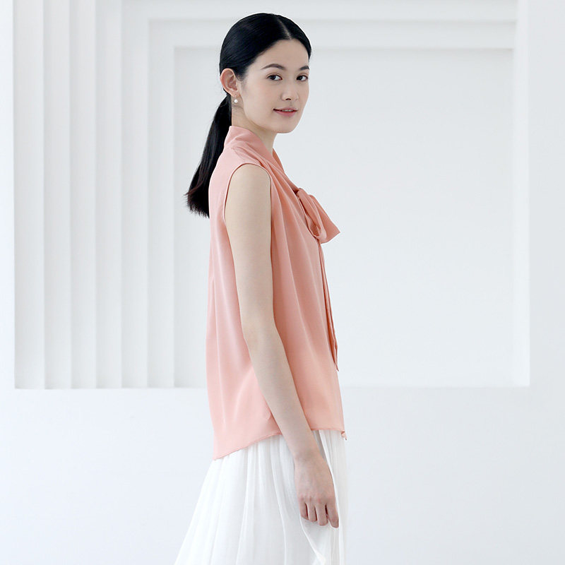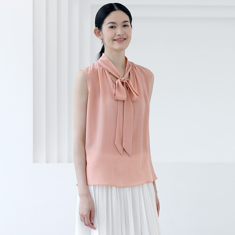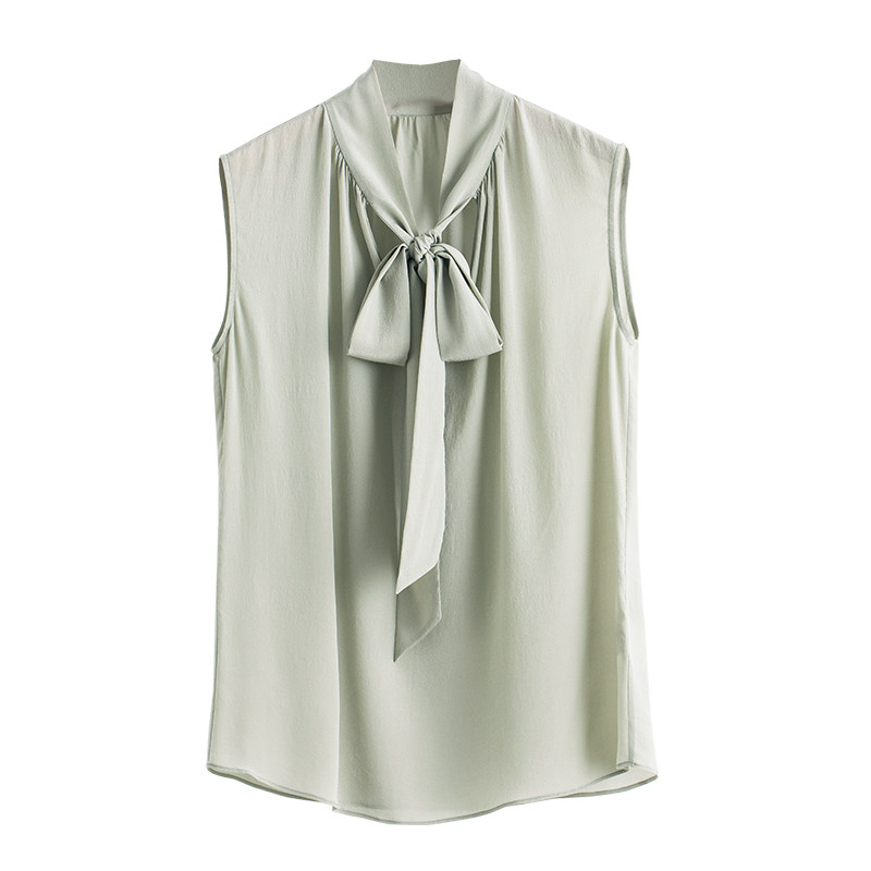 Monastery Mountain Wen also spread love true silk double crepe sleeveless shirt minimalist elegant floating with butterfly knot vest Summer lady