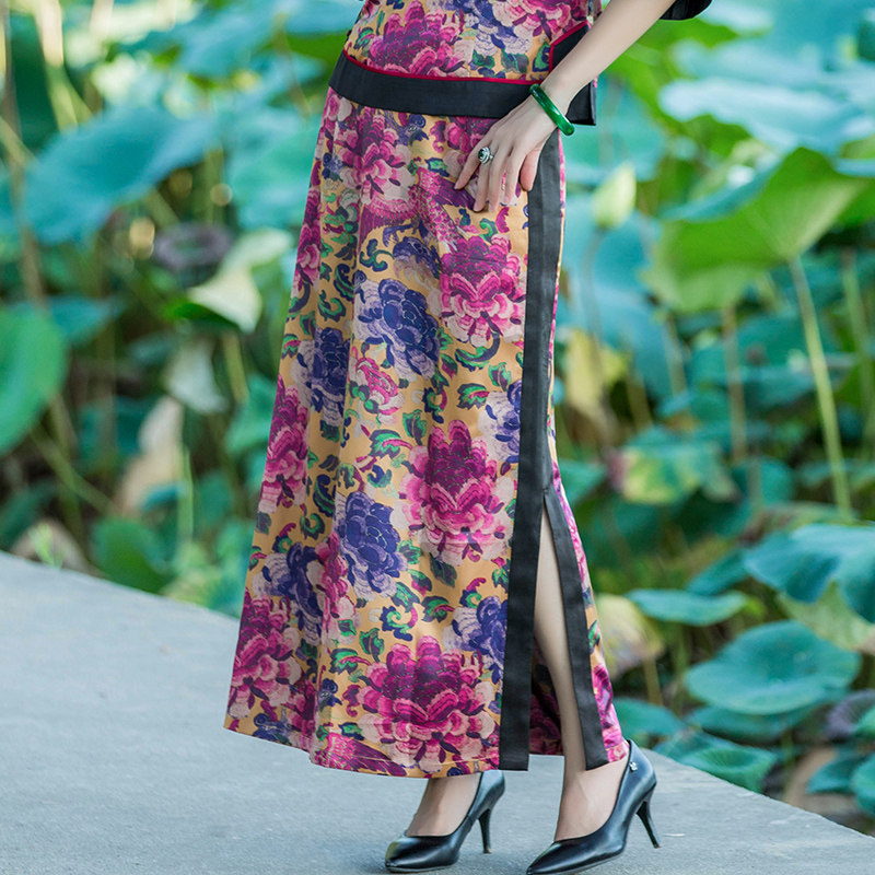 Chinese classic all-match one-step skirt summer new Chinese style retro literature and art elegant cheongsam Tang suit bag hip skirt