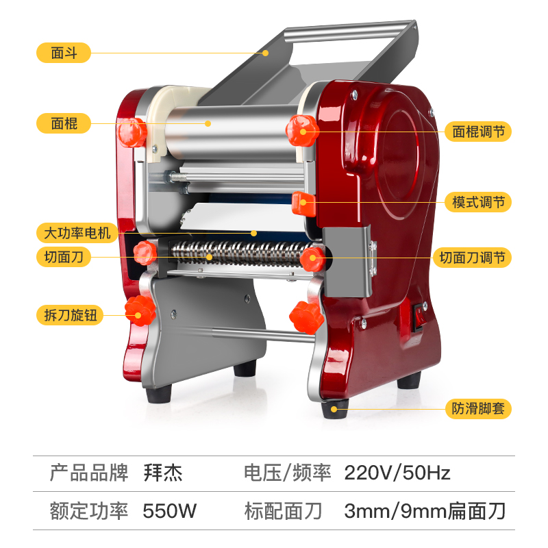 Baijie dough press home electric automatic small commercial kneading machine stainless steel knifeless knife noodle machine