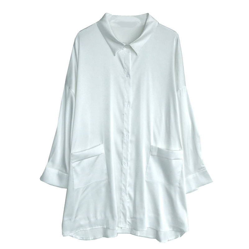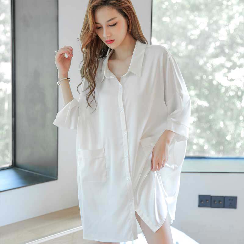 Nightdress women's summer thin loose sexy short-sleeved ice silk boyfriend style white shirt mid-length pajamas 2021 new