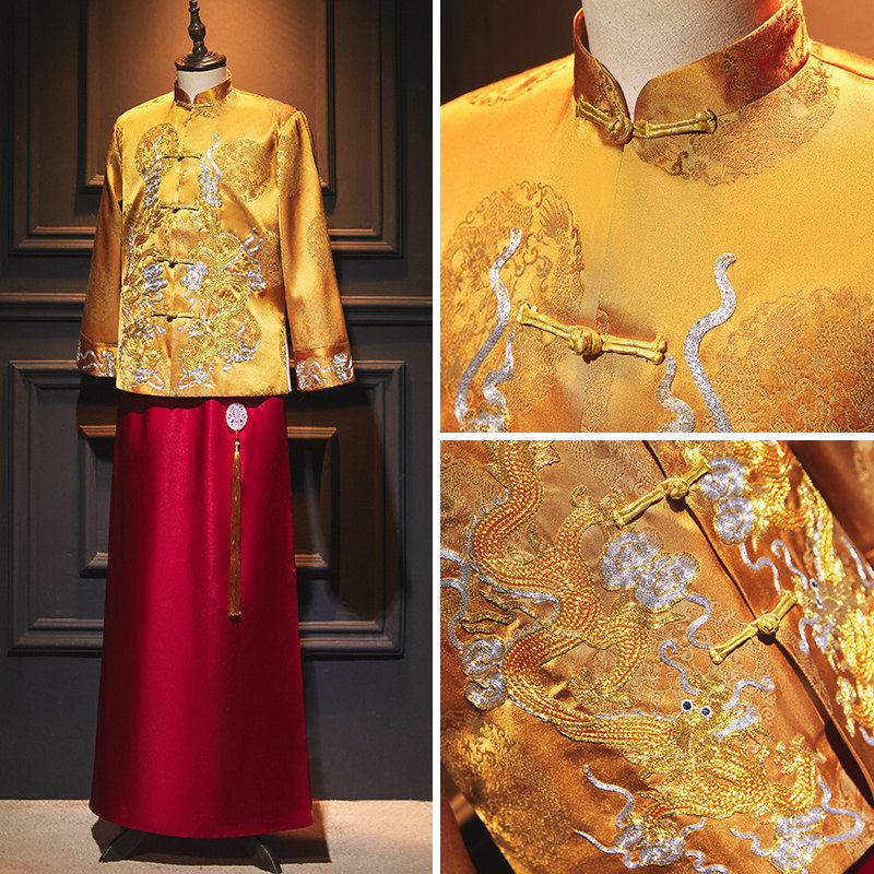 Men's Xiuhe clothing 2020 new groom clothing Chinese men's clothing Xiuhe horse jacket wedding toast clothing men's show kimono