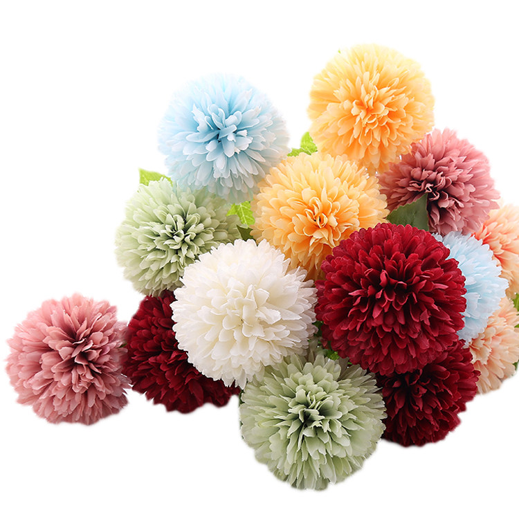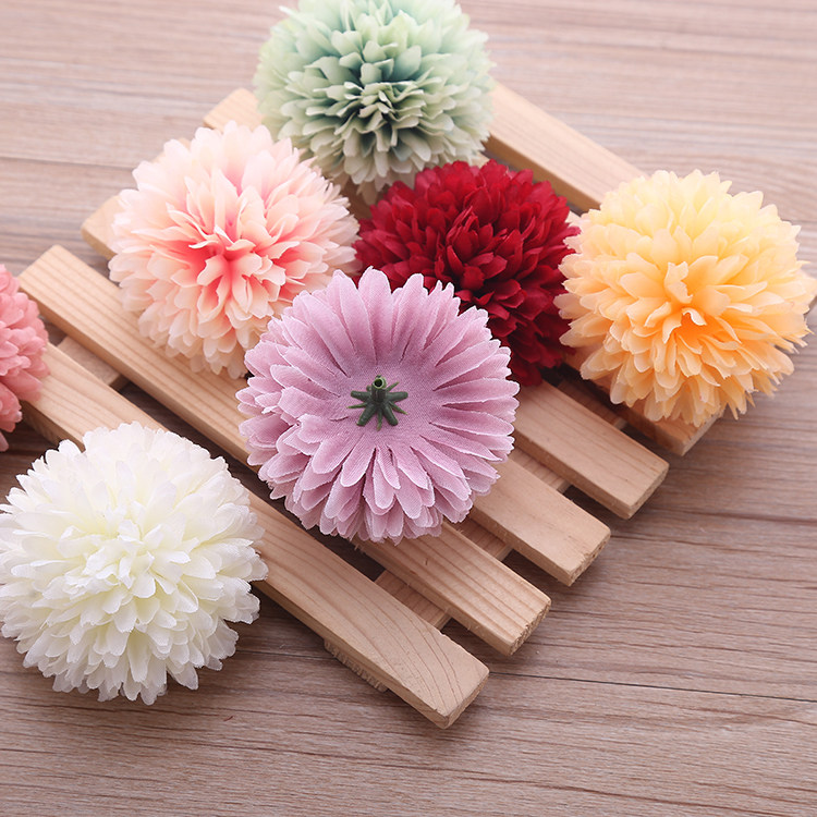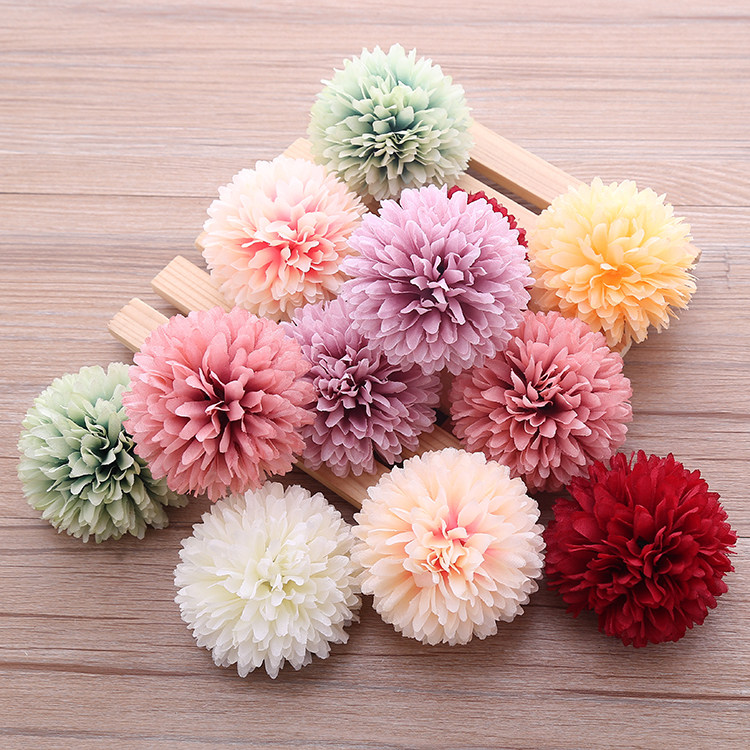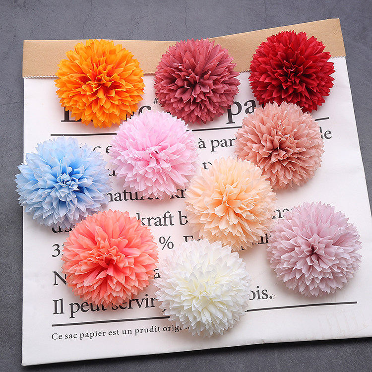 Simulation dandelion flower DIY headdress material fake flower round green onion ball chrysanthemum wedding flower head props Mori silk flower