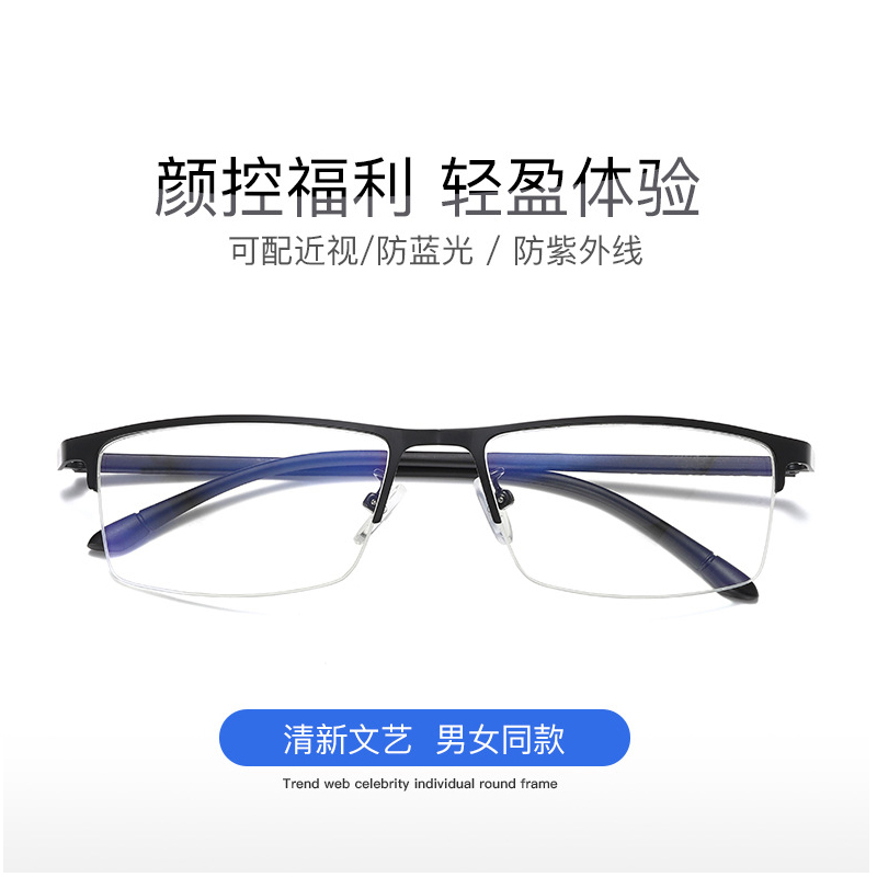 Business square half-frame myopia glasses men's anti-blue light radiation computer goggles flat mirror men can match degrees