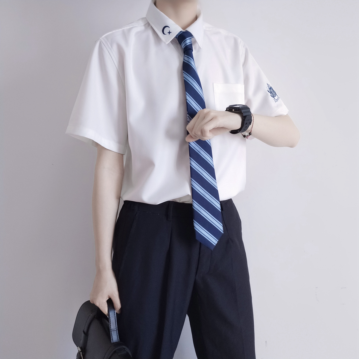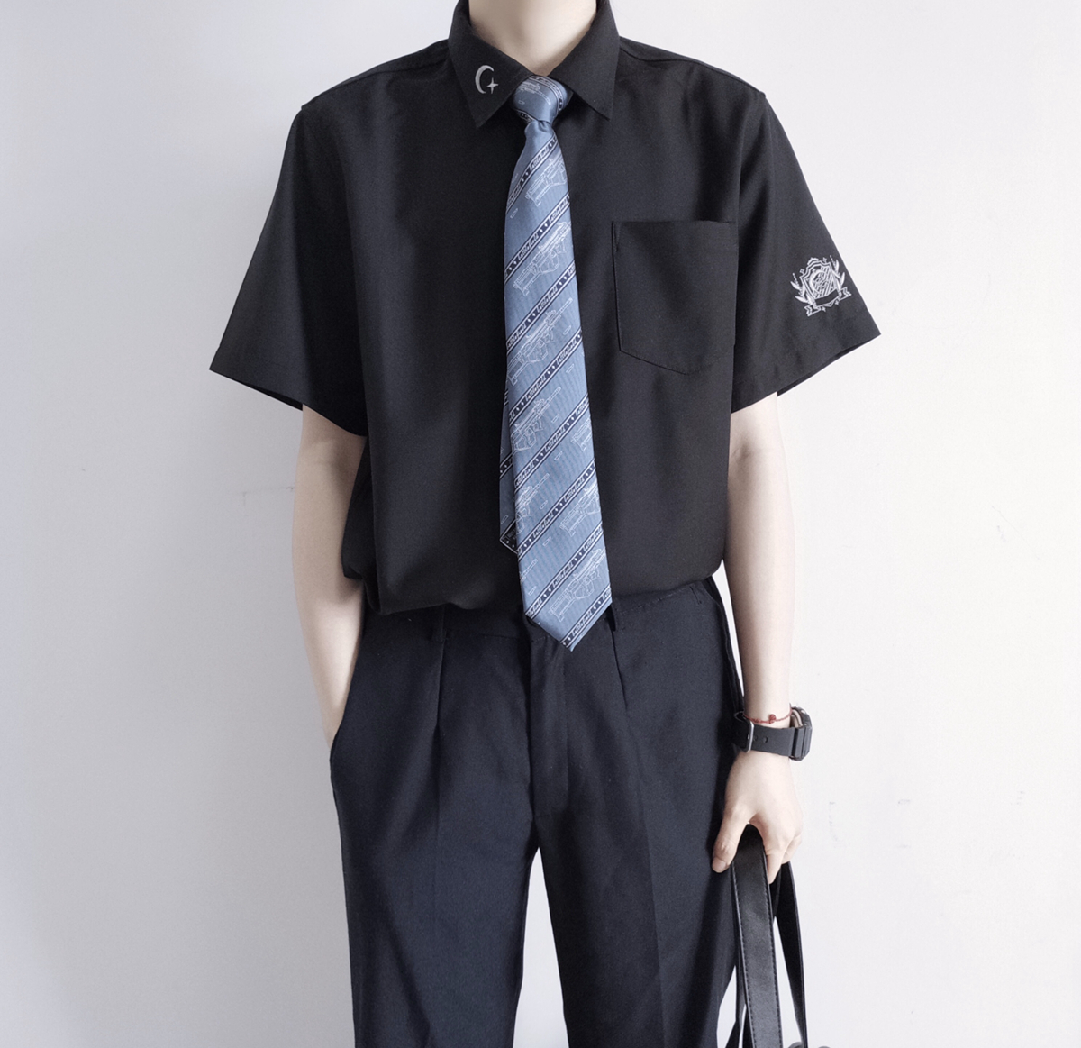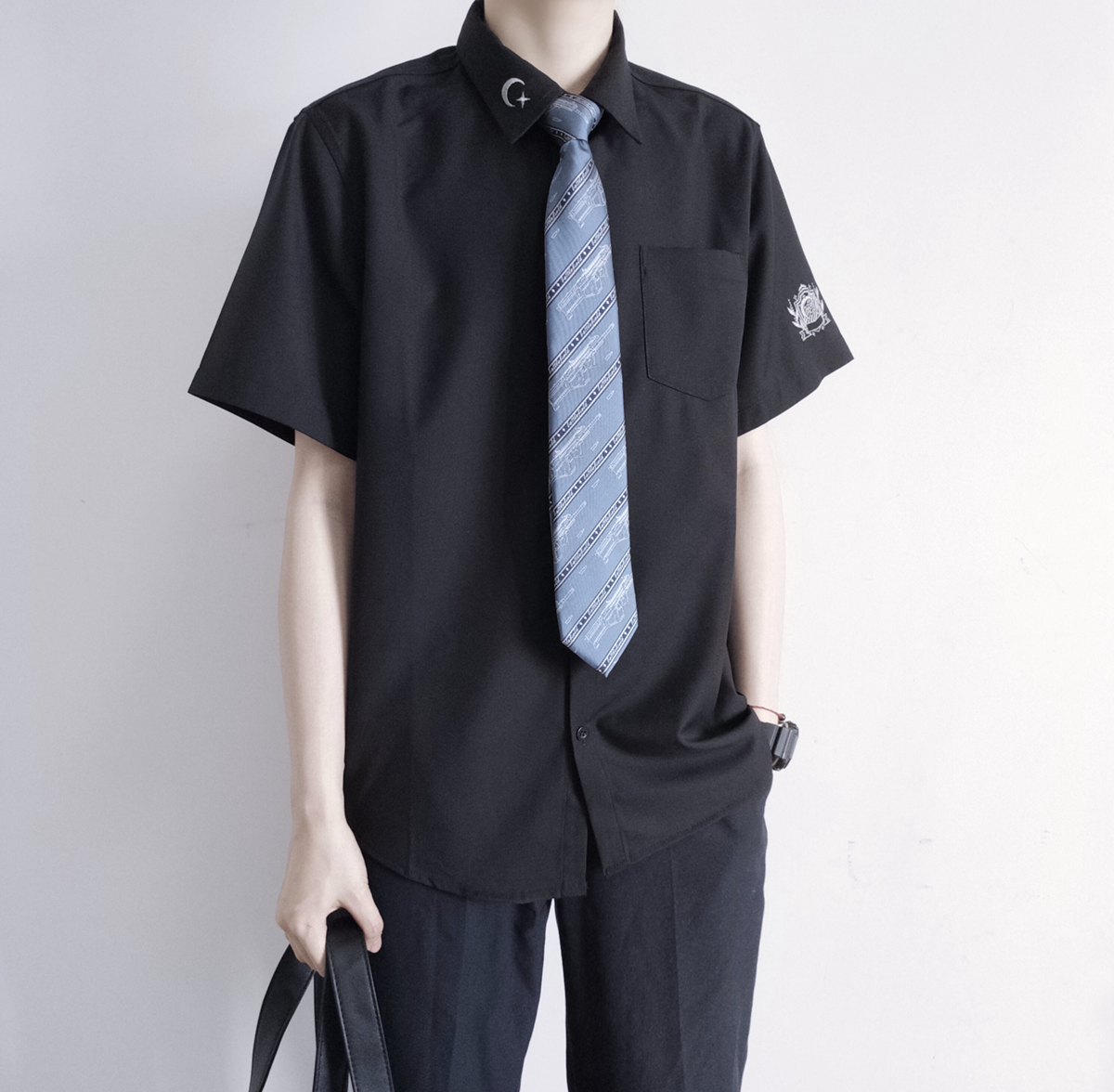 (Thorn) Breaking Star Original Japanese jk dk uniform short-sleeved dark blue embroidered college style shirt for men and women