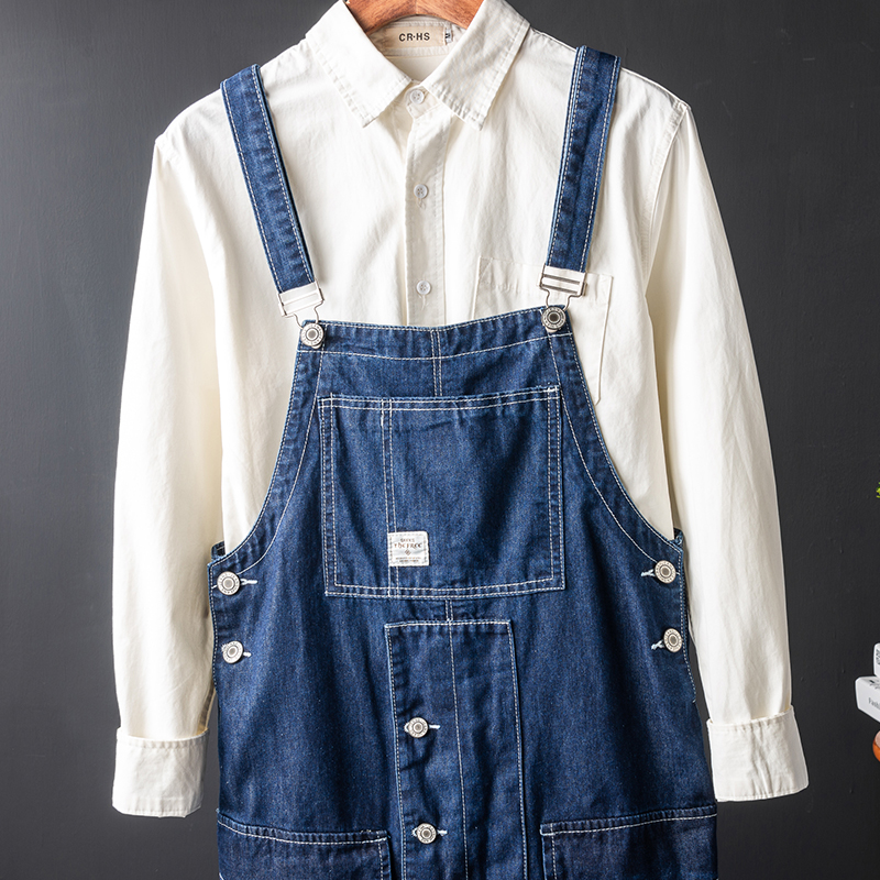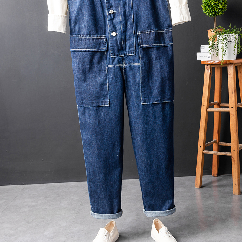 Guochao Hip Hop Loose Even Body Pants Male Couple Straight Cylinder Denim Tooling Cuddling Bag Pants Harness Long Pants Hide Cyan