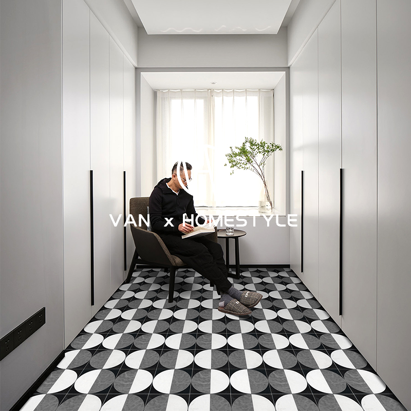Fannei retro bathroom bathroom black and white small flower tiles balcony courtyard flower tiles kitchen porch wall and floor tiles